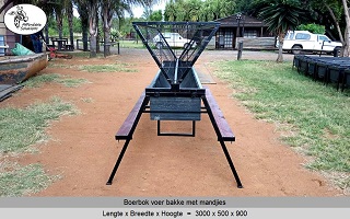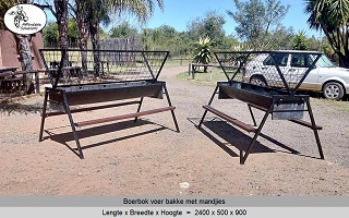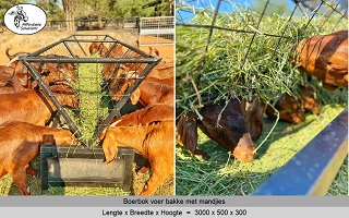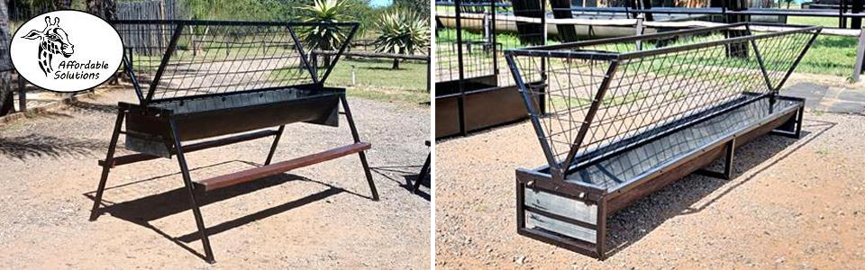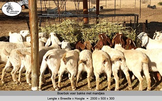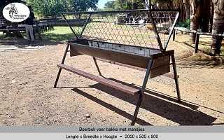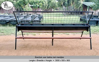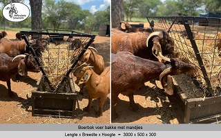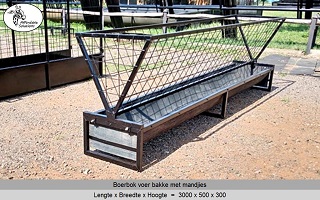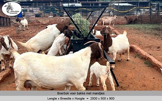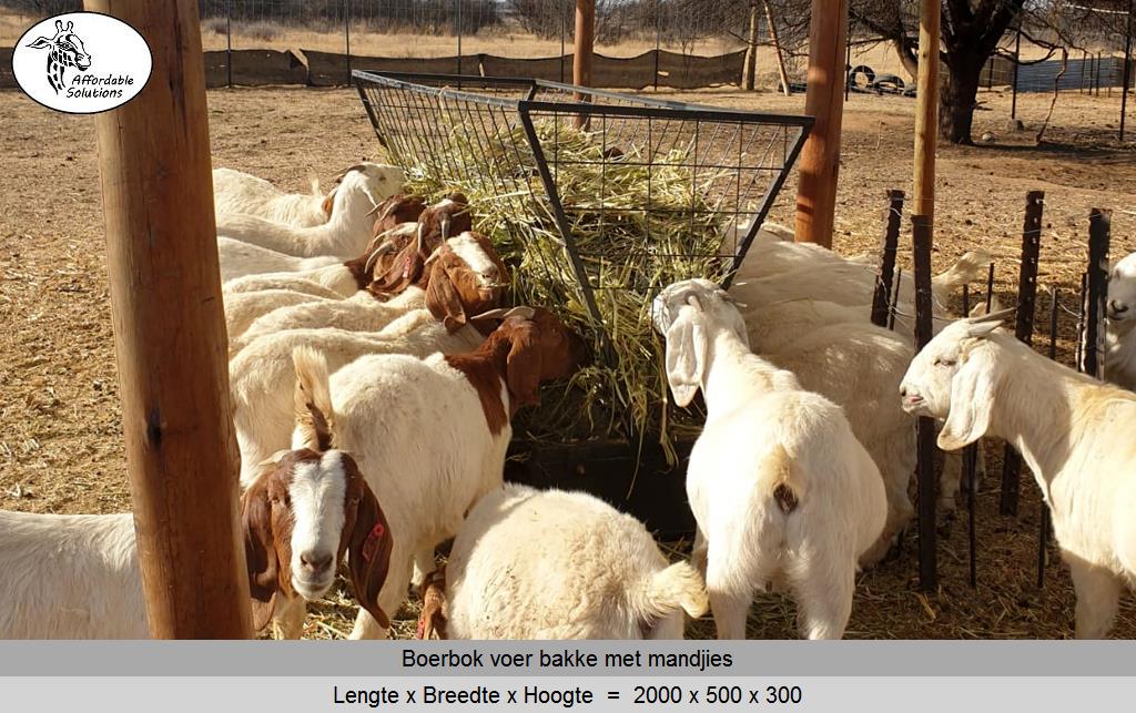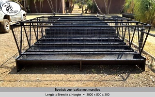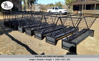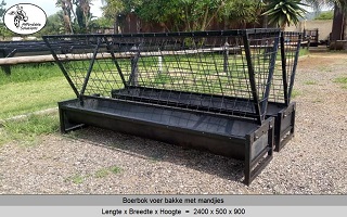 Vir jong en volwasse boer bokke (word ook gebruik vir skape). Die voer bakke is 500 breed en 300 hoog, en die mandjie is 700 breed en 600 hoog. Beskikbaar in lengtes van 2 meter - 2,4 meter - 3 meter.