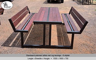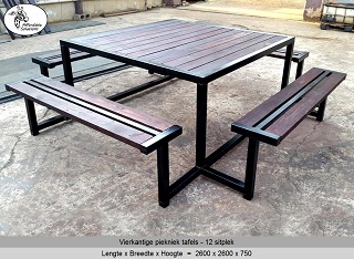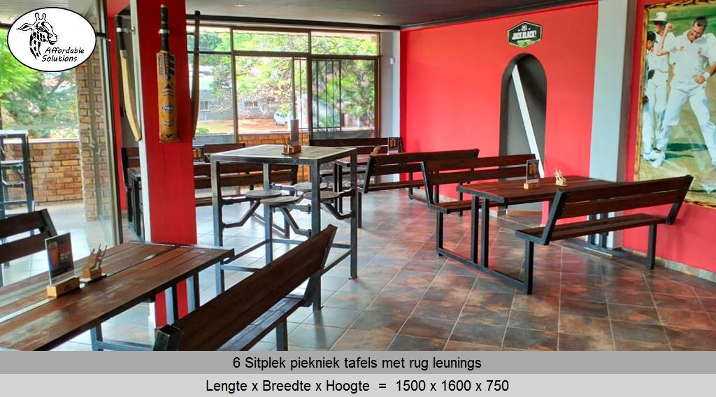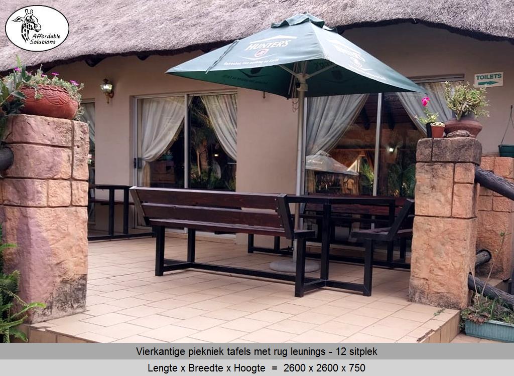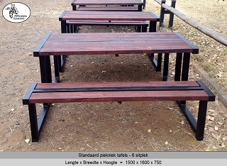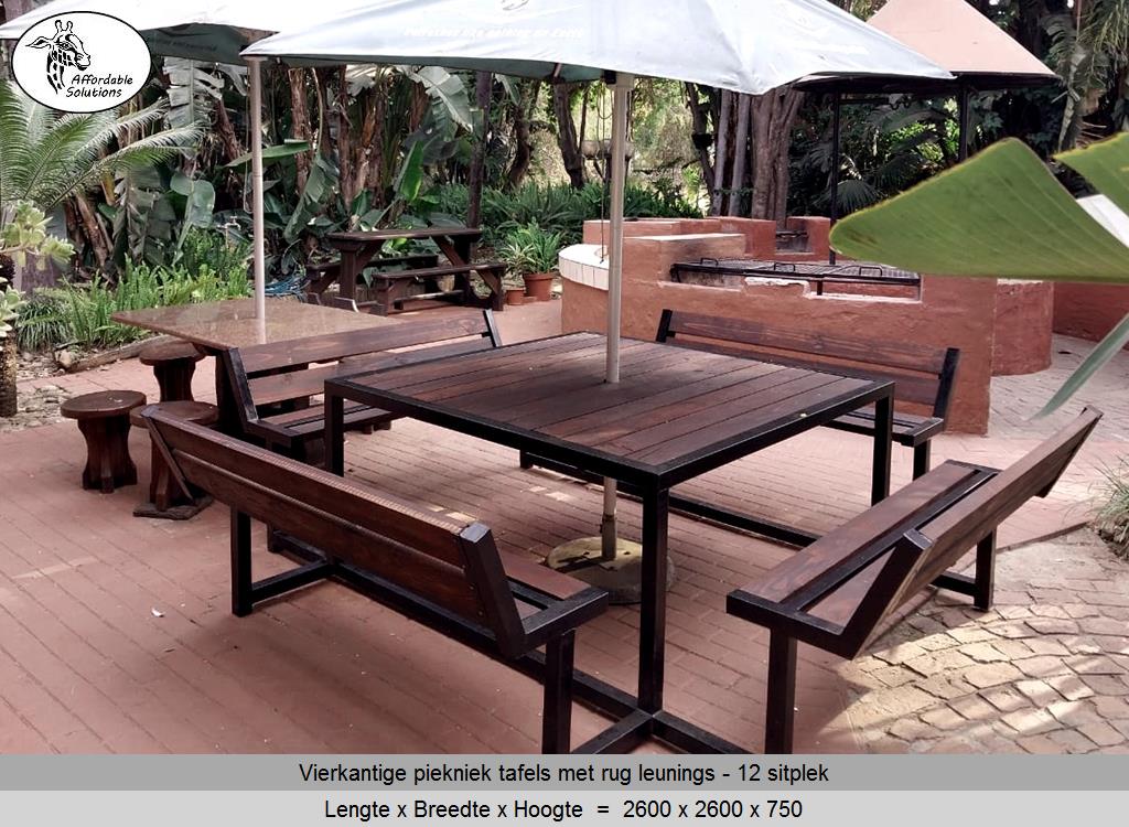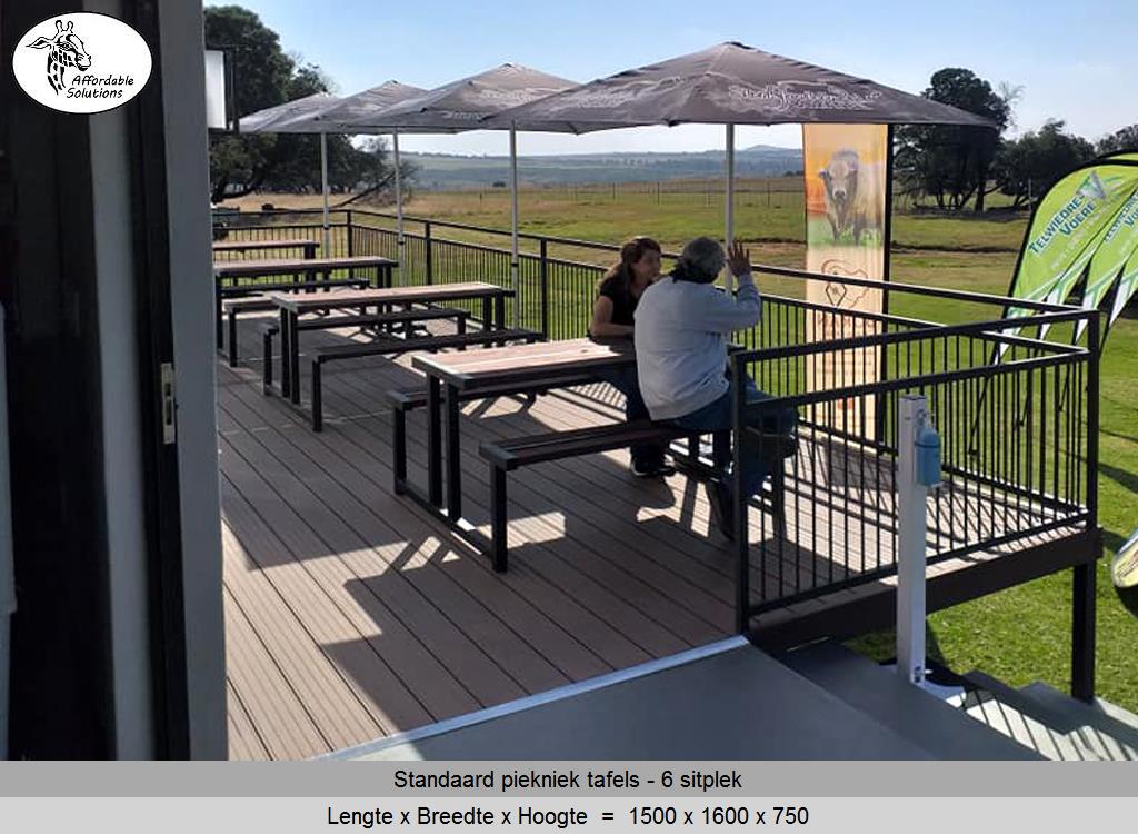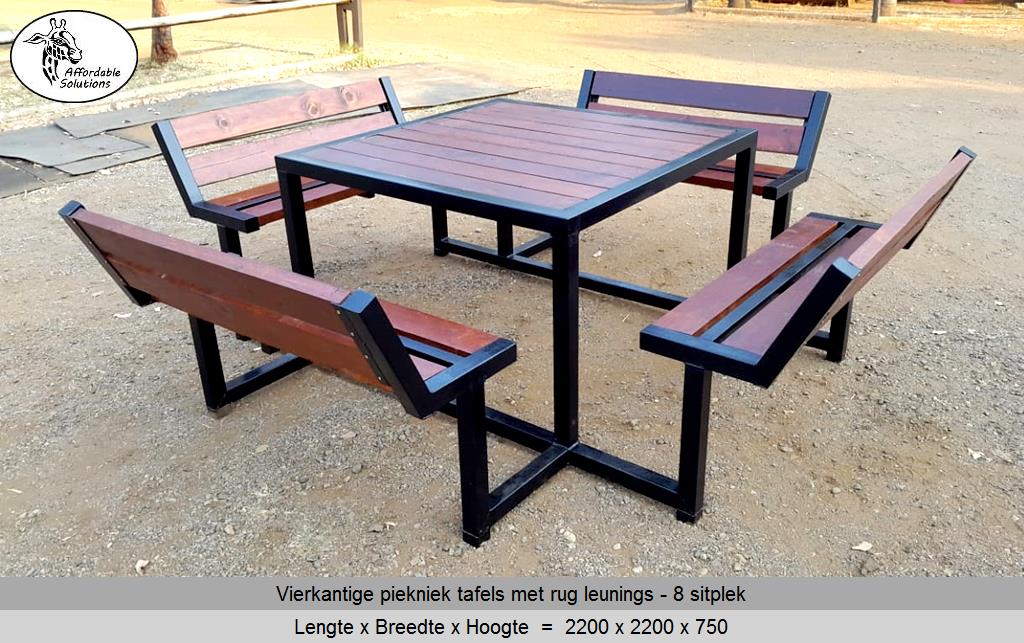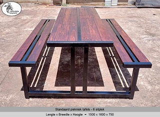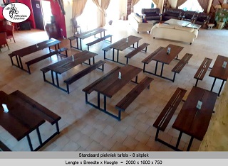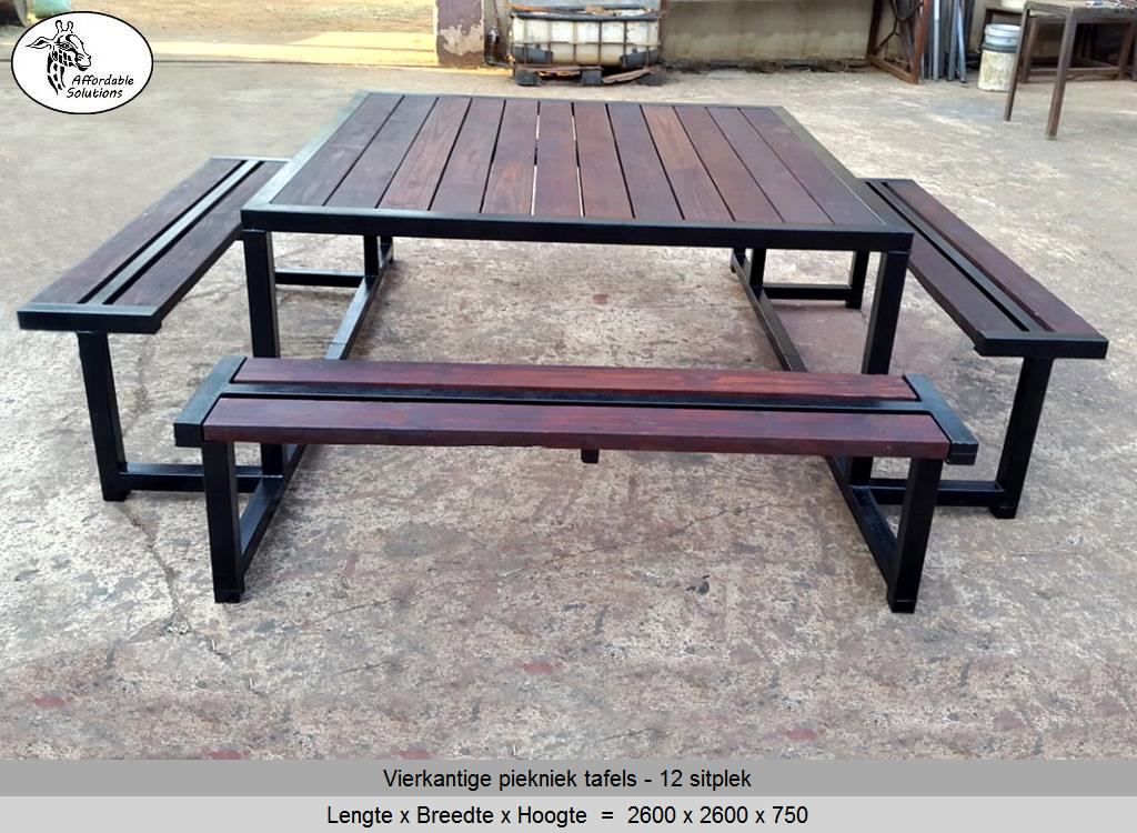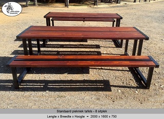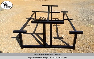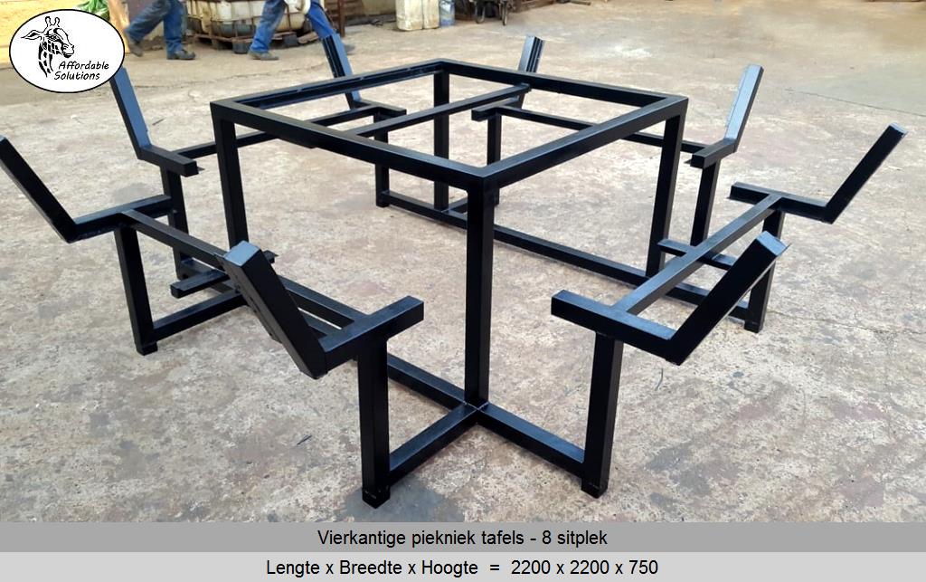 Die tafels het 'n baie sterk staal raam, gebou met 50x50 en 38x38 square tube.