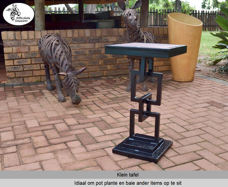 Die basis is 300mm x 300mm en die tafel blad is 380mm x 380mm. Ons kan ook bou volgens die koper se mates.