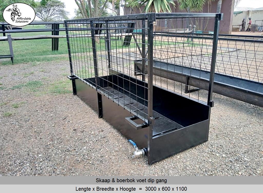 Voet dip gange is baie populêr en werk goed om jou skape en boer bokke te dip. Baie boere laat hulle skape en boer bokke gereeld deur die voet dip gang loop oppad veld toe.