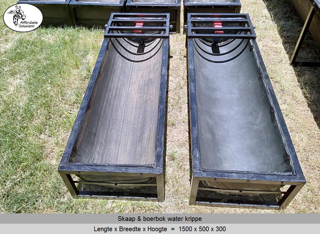 Die skaap en boerbok water krippe is gebou met 'n baie sterk staal raam, wat geverf word met red oxide en swart industriële verf.
