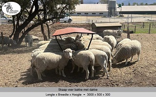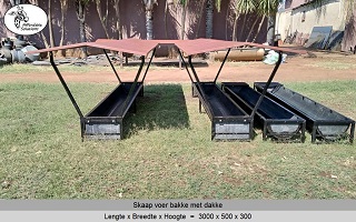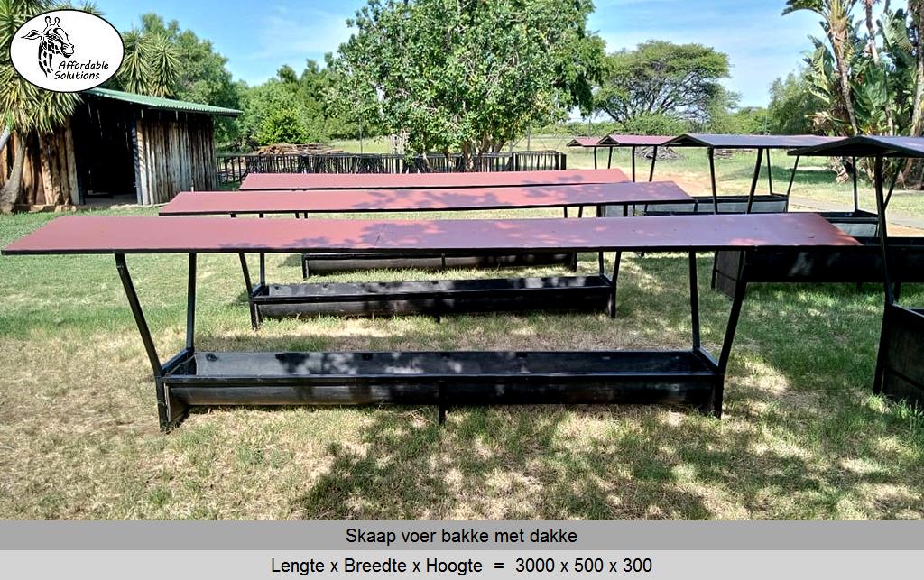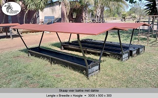 Die voer bakke met dakke werk baie goed om die skape se voer droog te hou wanneer dit reën, en verhoed dat voer kwaliteit verlaag word wanneer die son dit uit droog.