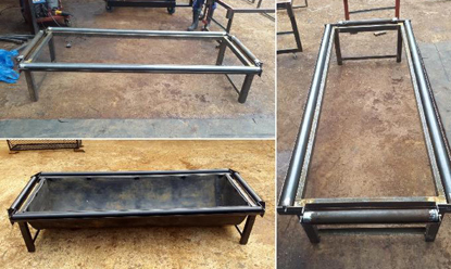 Die voer bakke se raam word gebou met square tube en rectangular tube.
