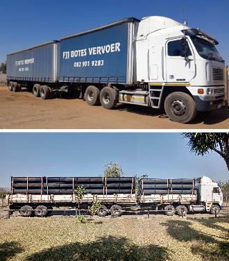Ons doen nie self vervoer nie, maar kan help vervoer reël indien nodig. Ons kry 'n kwotasie en die vervoerder se telefoon nommer stuur ons aan die boer, sodat hy die vervoer kan reël met die vervoerder. Alle vervoer betalings word ook direk aan die vervoerder gemaak.